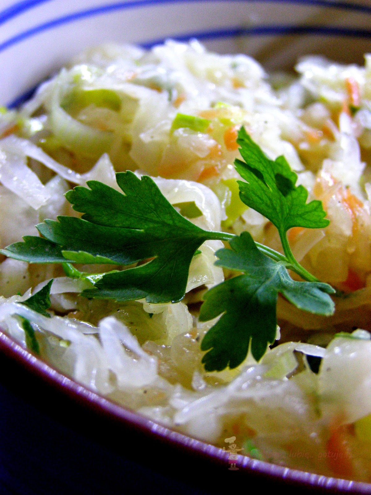 Pyszna i prosta surówka z kiszonej kapusty. Proporcje są na jedną średnią miseczkę surówki, oczywiście ilość składników dostosowujemy według potrzeb. Za przepis dziękuję cioci Ewie :)