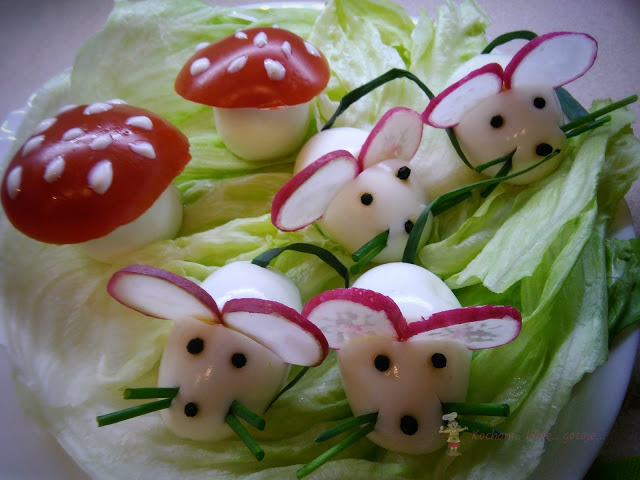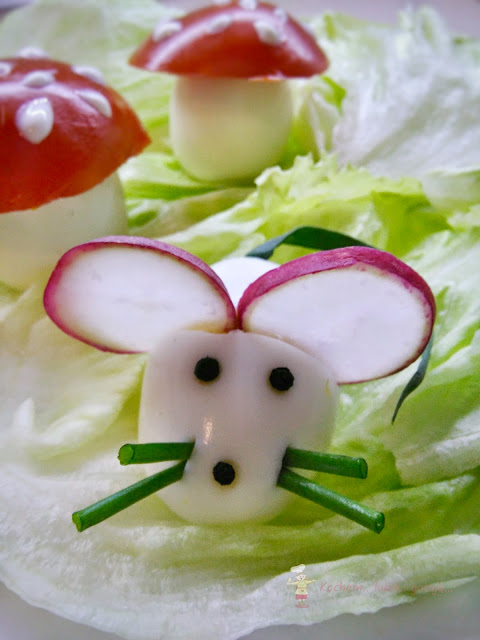 Kolejny pomysł na wesołe jajeczka, tym razem muchomorki i małe myszki. Przednia zabawa przy przygotowaniach zakończona pysznym posiłkiem. Po taką myszkę czy muchomorka sięgnie nawet niejadek :)