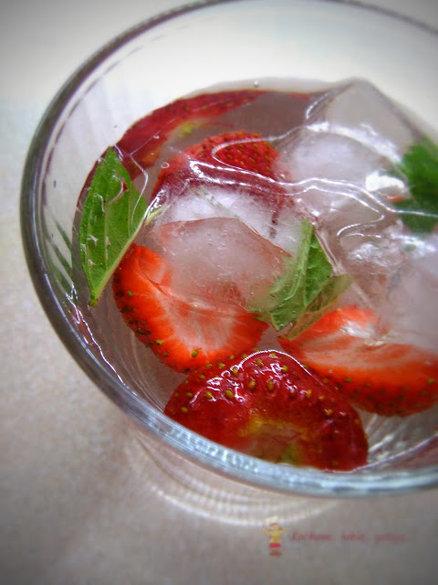 W moim mieście nadchodzi fala upałów, dlatego warto zadbać o odpowiednie nawodnienie organizmu. Najlepiej gasi pragnienie czysta woda mineralna, lecz warto sobie smak urozmaicić i przygotować taką wodę smakową, na przykład truskawkową. Rano widziałam wpis na blogu Czucherkowo i już moja woda się chłodzi w lodówce, a jedną szklaneczkę z lodem właśnie popijam. Dodałam tylko od siebie troszkę soku wyciśniętego z cytryny. Polecam!