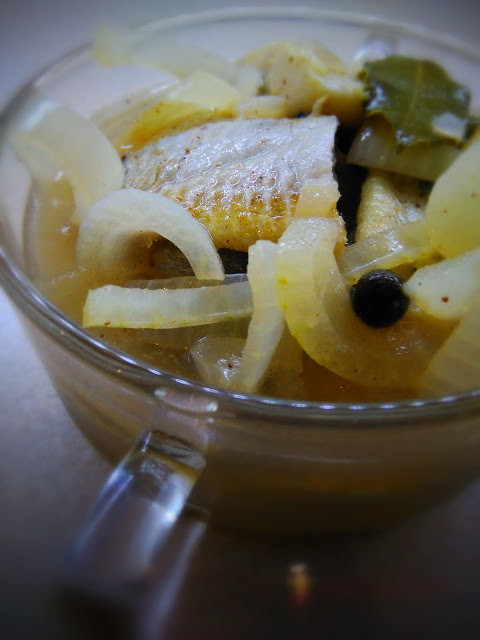 Śledzie niedawno na stałe zagościły w moim menu. Dopiero wtedy gdy zaczęłam próbować ich różne sposoby przyrządzania mogę stwierdzić, że śledzie lubię. Tym razem śledzie w zalewie octowo-korzennej z dodatkiem soku jabłkowego i korzennych przypraw. Połączenie niebywałe i nietuzinkowe, bardzo smaczne. Przepis pochodzi z opakowania imbiru mielonego firmy Prymat.
