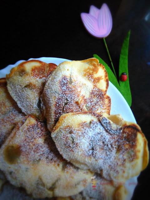 Brzoskwinie w ogrodzie już powoli dojrzewają – pierwszą partię mąż zebrał, czerwienią się już kolejne. Więc na obiad nic innego jak tylko placuszki waniliowe z twarożkiem z pysznymi brzoskwiniami – oczywiście będą dobre każde inne owoce, w oryginalnym przepisie na stronie Moje Wypieki są z jabłkami. Polecam!