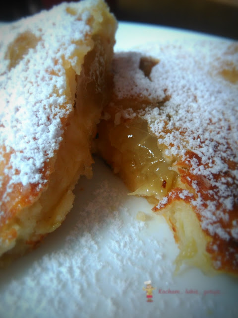 Placuszki smażyć na gorącym tłuszczu (lub najlepiej na nieprzywierającej patelni bez tłuszczu) na złoto z obu stron. Podawać ciepłe np. oprószone cukrem pudrem lub z dodatkiem świeżych owoców.