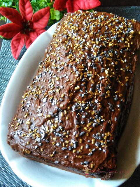 Gdy ciasto będzie upieczone polać rozpuszczoną czekoladą i dowolnie udekorować.