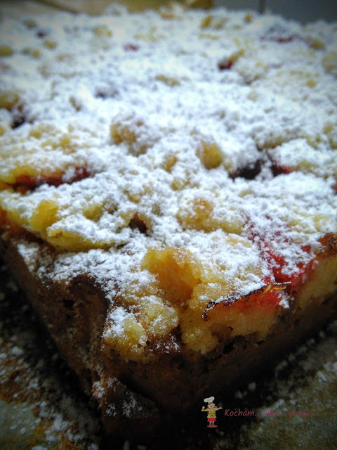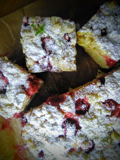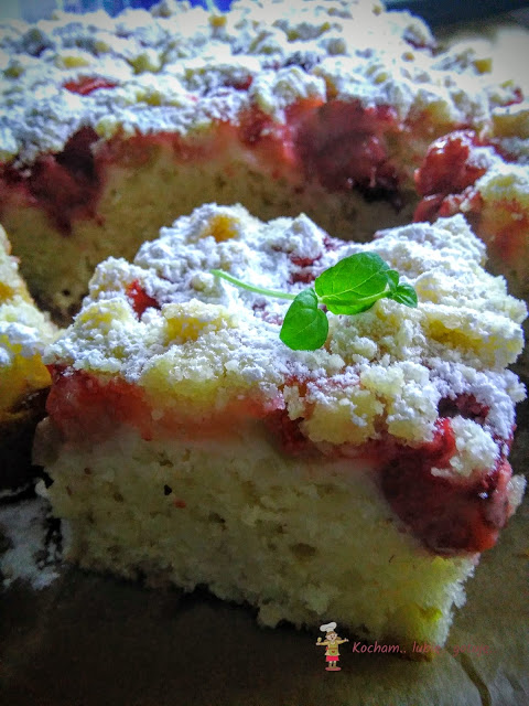 Ciasto wstawić do piekarnika nagrzanego do temperatury 1700C i piec około 45-50 minut, do suchego patyczka. Z mrożonymi truskawkami piekłam 55 min.