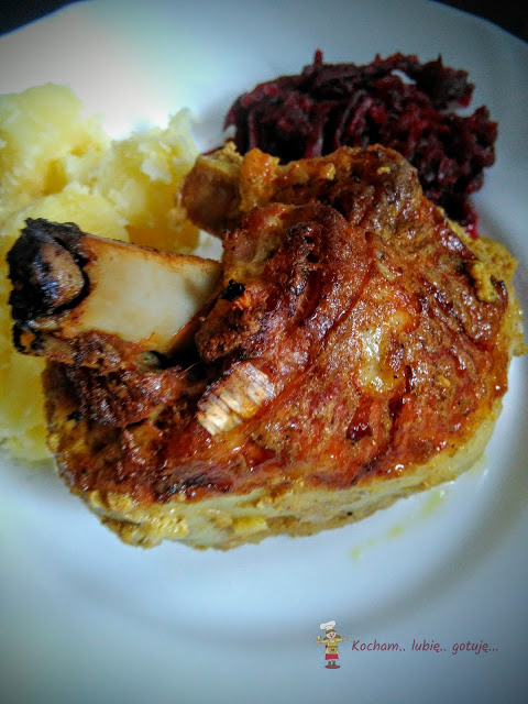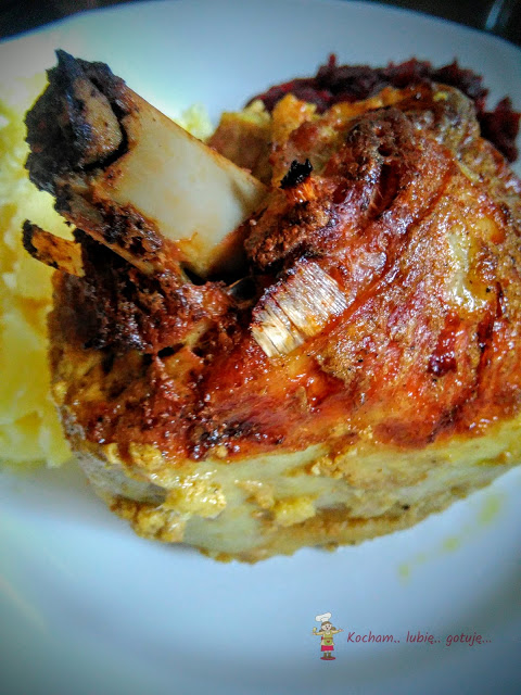 Zamarynowane golonki ułożyć w naczyniu żaroodpornym, przykryć pokrywą (jeśli ktoś nie ma można owinąć folią lub upiec w rękawie) i wstawić do piekarnika nagrzanego do temperatury 1800C (używam termoobiegu). Piec 1,5 h z pokrywą, następnie zdjąć pokrywę, ustawić funkcję z górną grzałką i zapiekać około 15 min aż skórka ładnie się przyrumieni.