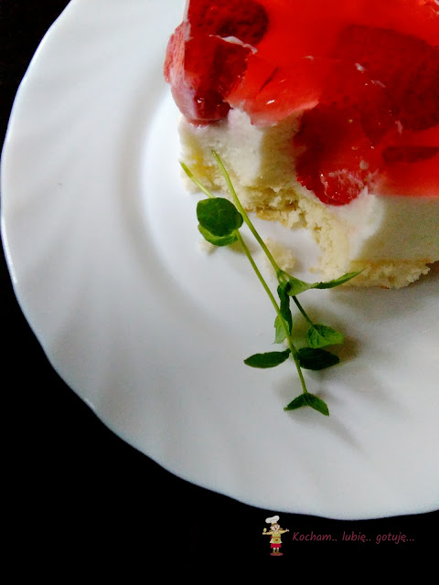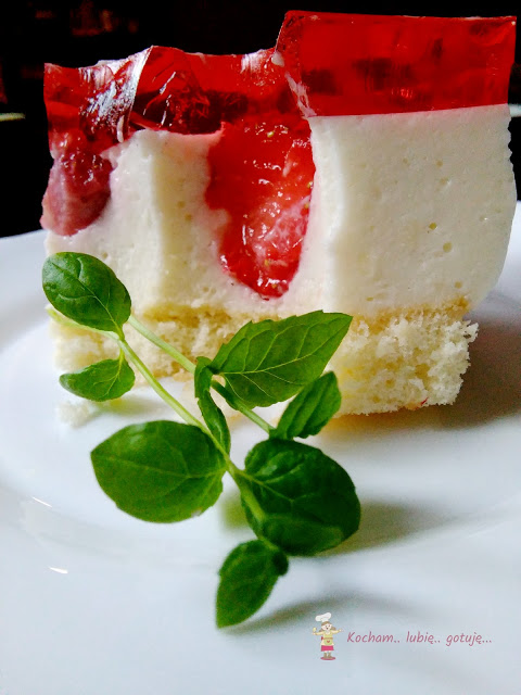 biszkopt z kremem budyniowym i owocami i już wiedziałam, że u nas też takie ciacho musi się pojawić. Babcia zawsze robiła krem budyniowy na bazie masła, na MW pojawiło się mascarpone a ja od kilku już lat robię takie kremy budyniowe z dodatkiem kremówki i właśnie taki krem dziś Wam proponuję, na własnoręcznie przygotowanym budyniu – bez użycia gotowego proszku. Budyń gotujemy dwa razy gęstszy niż taki normalny, więc wychodzi bardzo gęsty, wymagający energicznego i ciągłego mieszania, tak aby się nie przypalił. I powiem w tajemnicy, że nawet mój mąż nie lubiący budyniu zajadał się ciastem ze smakiem. Polecam bardzo!