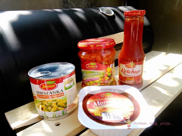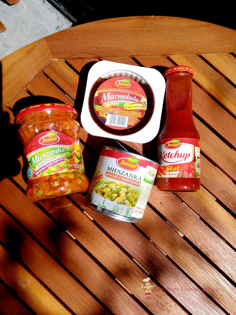 Jak już pewnie zauważyliście, ostatnio ukazywały się wpisy, w których używałam produktów firmy Jamar. Jakiś czas temu otrzymałam propozycję wypróbowania produktów tejże firmy, a po paru dniach przesyłka była już u mnie. W paczce otrzymałam: mieszankę warzyw w puszce groszek i kukurydza; słoik mieszanki warzyw groszek, kukurydza, marchewka; ketchup pikantny hot oraz marmoladę twardą. Użyłam i wypróbowałam już wszystkie te produkty także zapraszam na krótką recenzję. Przy każdym produkcie będzie link do mojego przepisu na blogu.