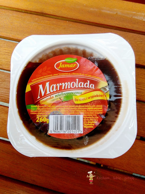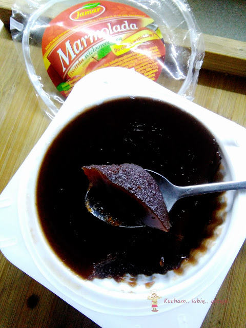 To mój ulubiony produkt, ponieważ uwielbiam proste wypieki z marmoladą. Marmolada jest w opakowaniu z przezroczystą górą – widzimy zawartość i konsystencję. Akurat w wypiekach bardzo ważne jest, aby marmolada sprzedawana jako twarda, była rzeczywiście twarda. Taka jest od firmy Jamar. W wypiekach nie wypływa i fantastycznie się sprawuje. Nie za słodka, nie za kwaśna – w sam raz. Z użyciem marmolady zrobiłam grzebyki i rogaliki.