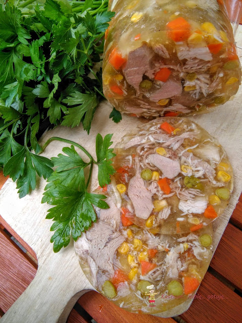 Zawartość słoika mile mnie zaskoczyła. Zalewa klarowna, bez żadnego osadu ani dominującego smaku, wydobywająca naturalny smak warzyw. Warzywa były jędrne, w całości, nie rozpadały się. Fantastycznie sprawdziły się w wędlinie – galarecie z indykiem i warzywami, gdzie dały się pięknie kroić i nadal pozostały jędrne.