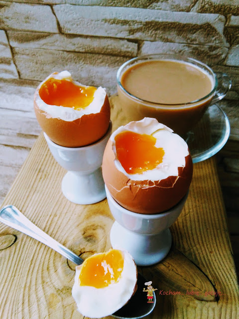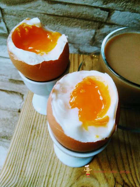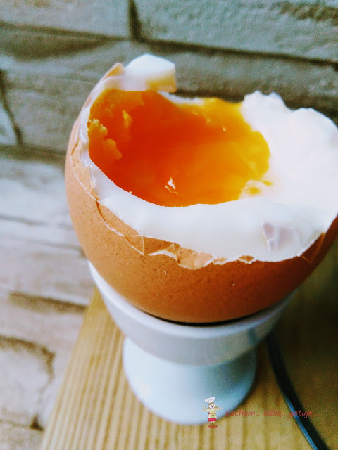 Jajka na miękko, półtwardo lub na twardo – jakie są Wasze ulubione? Dla mnie najlepsze są te na miękko, z dobrze ściętym białkiem i płynnym żółtkiem. Niby łatwo je zrobić ale jednak nie zawsze wychodzą, dlaczego? Bo jajka muszą być gotowane z minutnikiem lub stoperem, co do sekundy. Jest kilka sposobów – wkładane na wrzątek lub do zimnej wody. Nie wiem, który jest idealny i wyjątkowy. Jednak ja zawsze jajka wkładam do zimnej wody i od momentu zawrzenia wody odliczam „3 minuty = 180 sekund” i ani sekundy dłużej. Później od razu do zimnej wody i gotowe :) Dlaczego nie do wrzątku? Ponieważ jak się wkłada do wrzątku to jest istotny rozmiar jajka i jego temperatura, ilość wody itd. Wkładając do zimnej wody nie przejmujemy się już rozmiarem, temperaturą ani niczym innym – najwyżej mniej lub więcej czasu zajmie dojście do punktu wrzenia, a później „3 minuty” i już, naprawdę już :) A Wy jak gotujecie jajka?