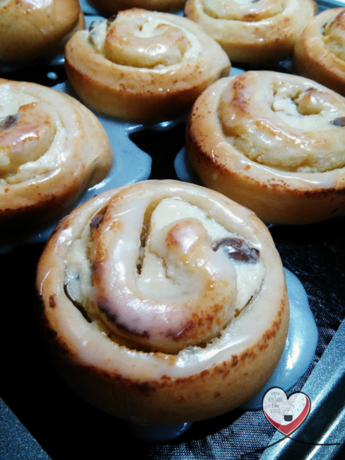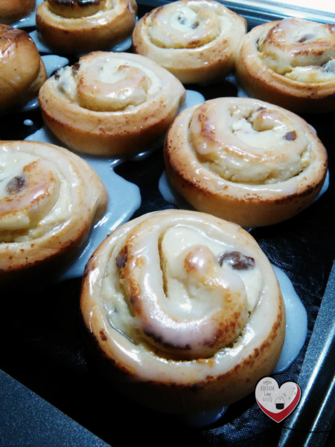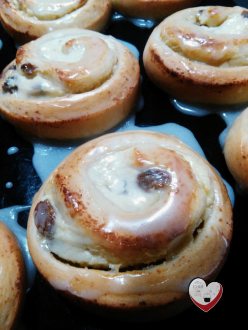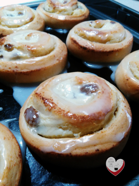 Drożdżówki po upieczeniu delikatnie wystudzić i jeszcze ciepłe (ale nie gorące) polukrować.