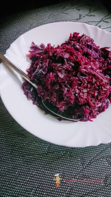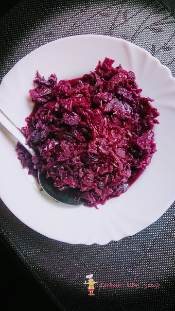 Uwielbiam czerwoną kapustę i mogę ją jeść w każdej postaci- czy to surówki, duszoną, na ciepło lub zimno. Dziś wersja z jabłkiem i cebulką, zakwaszana octem i to dzięki niemu ma taki piękny kolor (na żywo wygląda lepiej). Z pomocą szybkowara przygotowałam ją ekspresowo ale śmiało można obgotować w zwykłym garnku, gotując dłużej do miękkości kapusty. Idealna do wszelkich klusek, ziemniaków, sosów i pieczeni. Z kaczką to już w ogóle rewelacja :) Polecam serdecznie!