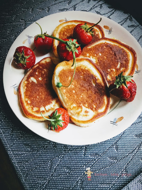 Placuszki podawać według uznania: z cukrem pudrem, owocami, dżemem.