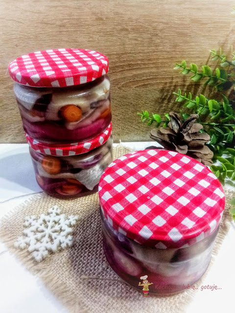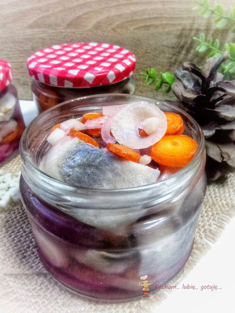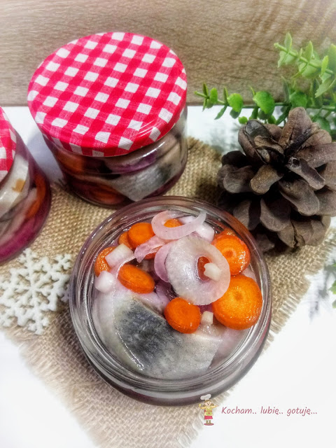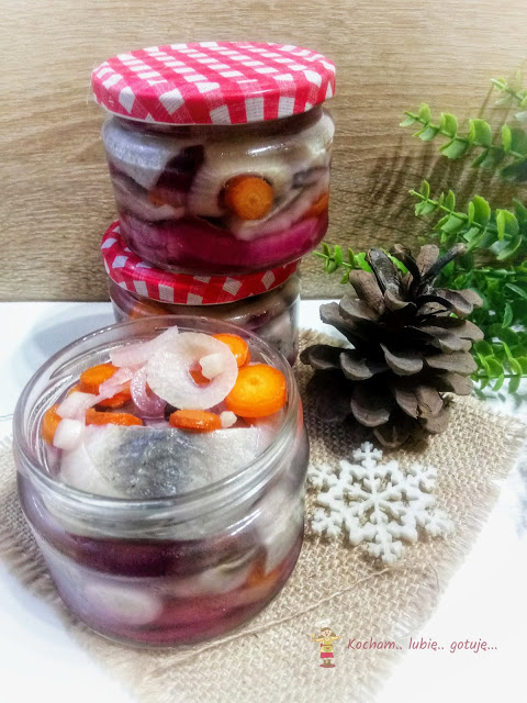 W domu jedynym śledziowym amatorem jestem ja. W związku z tym na świątecznym stole zazwyczaj pojawia się jedna ich odsłona. W tym roku postawiłam na śledzie w zalewie słodko-kwaśnej z marchewką i cebulką. Kiedy Julianna dodała swój przepis, nie mogłam się im oprzeć i także pojawiły się u mnie. Najlepsze są po 5-7 dniach, kiedy smaki się przegryzą. Nie tylko na Święta ale przez cały okrągły rok :) Można jeść tak zwyczajnie prosto z zalewy, ale również z dodatkiem śmietany – jak lubicie. Serdecznie polecam :)