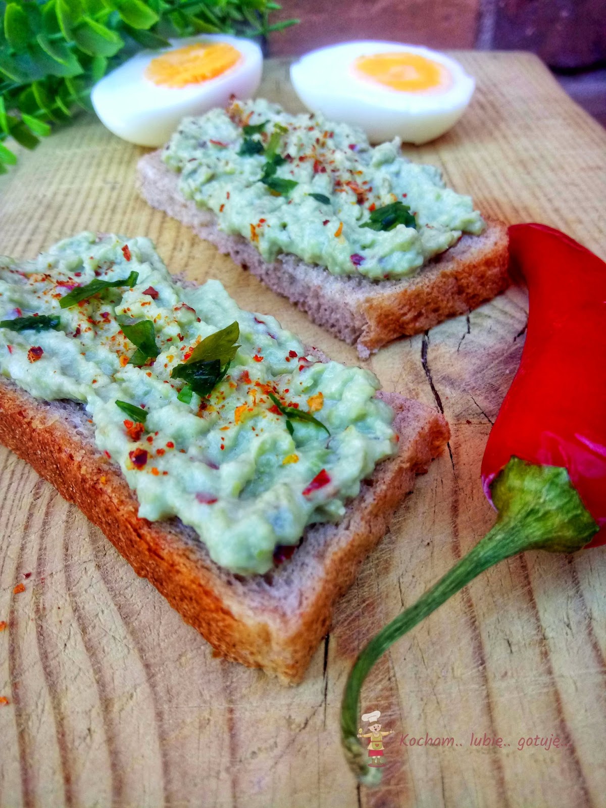 Pasta z bobu w wersji na ostro, z chili. Przygotowuje się ją zupełnie tak samo jak tą z natką pietruszki. Fantastyczny dodatek do pieczywa!