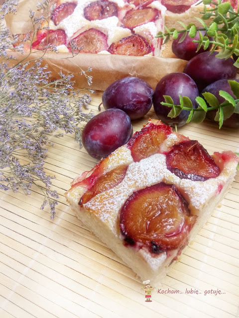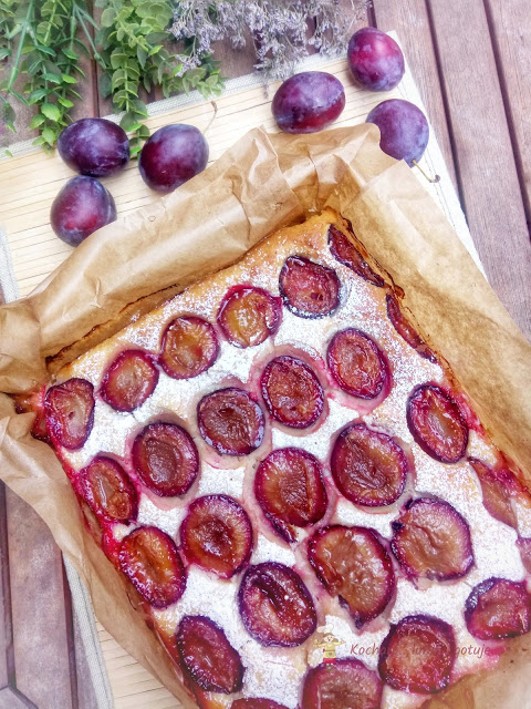 - 500 g świeżych śliwek (bez pestek, przekrojonych na pół)