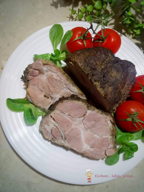 Przepyszna propozycja pieczonej karkówki – na ciepło jako danie obiadowe lub na zimno jako wędlina. Kruchutka, delikatna i bardzo soczysta. W marynacie podane są trzy rodzaje musztardy – lecz z powodzeniem możecie użyć swoich ulubionych lub użyć tylko jednego rodzaju. Za przepis dziękuję Maxellowi, z forum Wędzarniczej Braci wedlinydomowe.pl