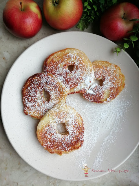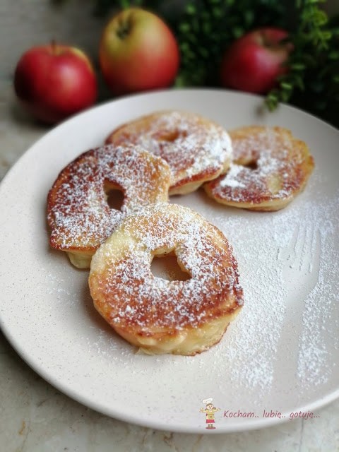 Moja córcia jest fanką wszelkich placuszków, racuszków, klusek i naleśników. Najbardziej niebezpieczne pytanie to: „Co dziś zrobić na obiad?”. Odpowiedzią zawsze będą naleśniki, ewentualnie racuszki. Te racuszki to grube plasterki jabłuszka w cieście drożdżowym, ale można też oczywiście bez bawienia się w kuchni do ciasta drożdżowego dodać starte jabłka lub pokrojone w kawałki i smażyć zwykłe placuszki. Polecam, nie tylko na obiad czy kolację, ale także na deser :)