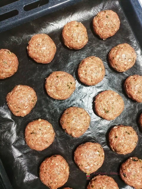 Mięso z indyka zmielić w maszynce do mielenia mięs. Do mięsa dodać wodę, jajko, posiekaną natkę pietruszki, zeszkloną cebulkę, czosnek, sól i pieprz (wg preferencji, ja daję 18 g soli i 2 g pieprzu na kg mięsa) i wymieszać. Dłońmi maczanymi w zimnej wodzie uformować małe kotleciki. Położyć je na blasze piekarnikowej wyścielonej papierem do pieczenia lub matą teflonową i wstawić do piekarnika nagrzanego do temperatury 175oC, piec 20-25 min.