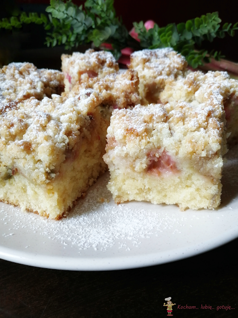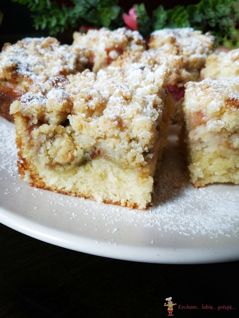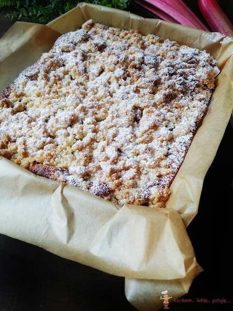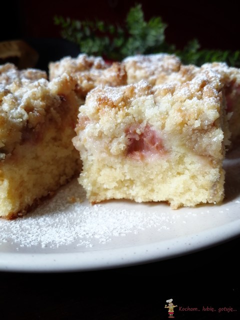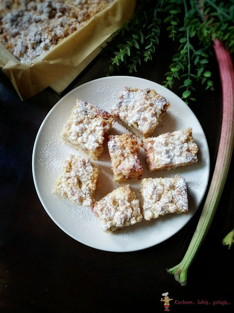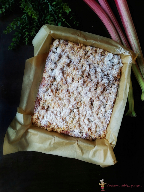 Ciasto na kremówce jeszcze mi się nie znudziło :) Zastanawiam się jeszcze ile będzie jego odsłon :) Niby zawsze to samo ale z różnymi dodatkami za każdym razem może smakować inaczej – tym razem połączenie kokosa i rabarbaru. Wiórki kokosowe w cieście, wiórki w kruszonce i kwaśny rabarbar to naprawdę zgrany i pyszny zespół. Polecam serdecznie :)