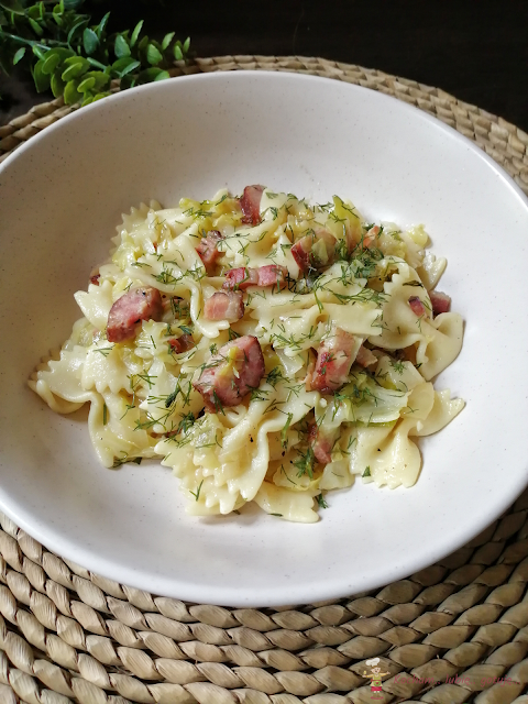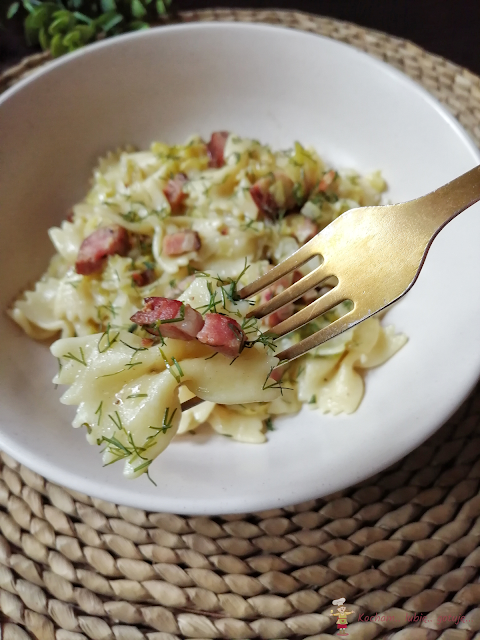 Prosty przepis z młodą kapustą w roli głównej, z dodatkiem wędzonego boczku i kiełbasy, podaną z makaronem. Kiełbaskę i boczek uwędziliśmy własnoręcznie :) Szybko, nieskomplikowanie a jak pysznie :)