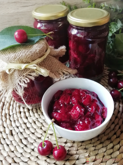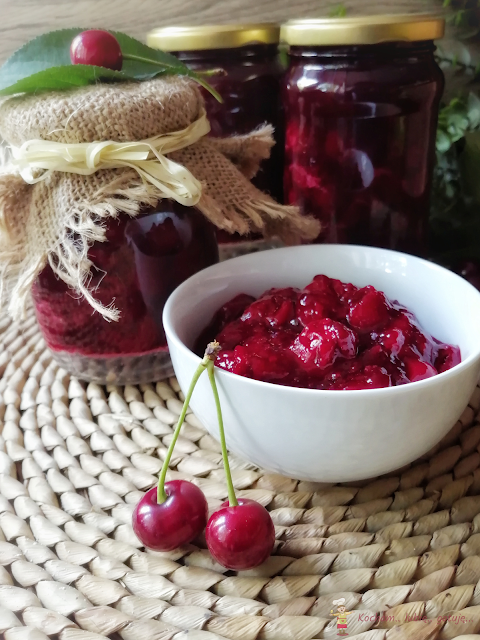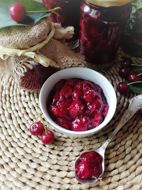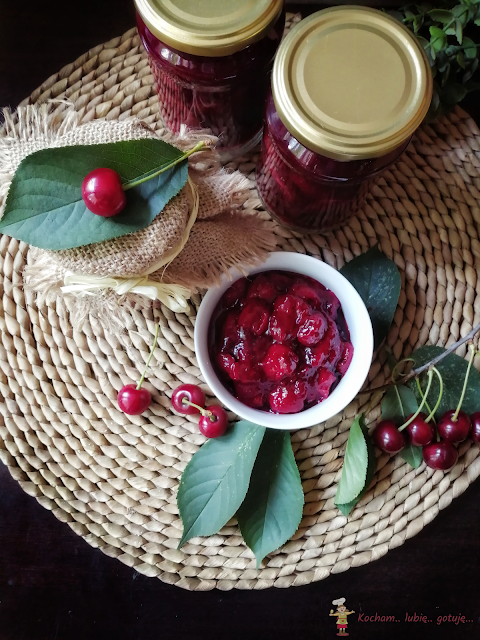 Dżem wiśniowy z całymi owocami to obowiązkowa pozycja w mojej spiżarni podczas corocznego zaprawiania wiśni. Pyszne całe owoce wiśni skąpane w galaretce – czegóż chcieć więcej? No może tylko do szczęścia brakuje domowej bagietki lub rogalika :) Ilość pektyny podana w przepisie może się różnić od ilości zalecanej przez producenta danej firmy. Musicie czytać etykiety :) U mnie podane jest 8-16 g pektyny na kilogram owoców, więc dawkę mam wypróbowaną i spełnia moje oczekiwania. Polecam serdecznie :)