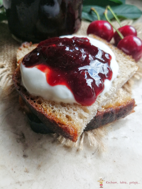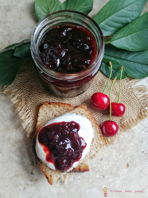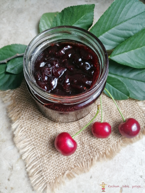 Prawdziwa konfitura, gęsta, słodka, robiona babcinym sposobem. Zmniejszyłam tylko troszkę ilość cukru – babcia na 1 kg owoców używała 1 kg cukru. Podczas sezonu wiśniowego oprócz dżemów niskosłodzonych zawsze robię partię takich prawdziwych konfitur. Nie ma nic lepszego, niż słoiczek pysznych konfitur otwarty w środku zimy do naleśnika, kanapki lub jako nadzienie do rogalików czy pączków. Polecam serdecznie :)