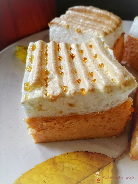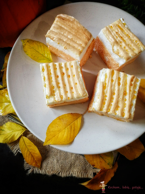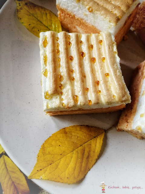 Wyjąć sernik z piekarnika (nie wyłączać piekarnika), na gorący sernik wyłożyć pianę z białek. Wyrównać np grzebieniem cukierniczym lub zrobić wzorek widelcem i blachę włożyć z powrotem do piekarnika na kolejne 15 min, do zezłocenia piany. Nie dłużej, bo zamiast pysznej pianki wyjdzie nam beza. Po upieczeniu wyłączyć piekarnik, uchylić drzwiczki i tak studzić, następnie przełożyć w chłodne miejsce np. do lodówki. Sernik najpyszniejszy jest po 12 h spędzonych w lodówce.