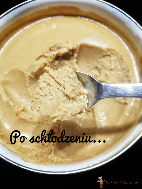 Z minuty na minuty zacznie robić się gęsta, oleista masa. Siekać tak długo aż masa będzie kremowa i smarowna. Co jakiś czas być może będzie potrzeba dać malakserowi odpocząć, aby się nie przegrzał i nie spalił, zależy od jego mocy. Ja siekałam około 10 min na prawie najwyższych obrotach.