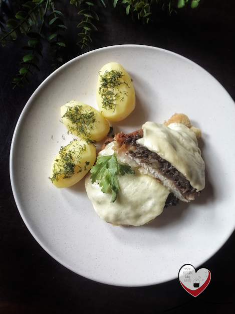 Tradycyjne kotlety schabowe pod pierzynką z pieczarek i sera żółtego to kolejna propozycja na posiłek ze schabem w roli głównej. Danie dość ciężkie, syte ale od czas do czasu warto sobie pozwolić na odrobinę przyjemności :)